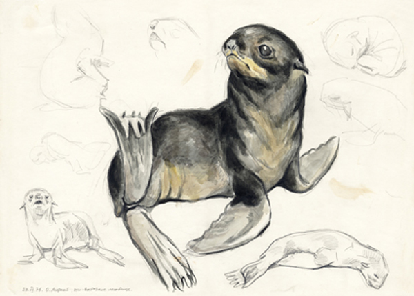 На выставке можно познакомиться с портретами и зарисовками командорских зверей, особенностями их