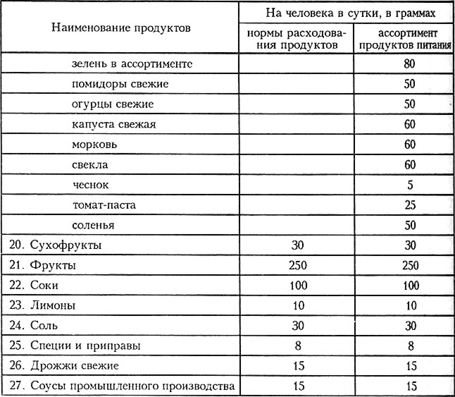 Приложение 1 НОРМЫ И АССОРТИМЕНТ РАСХОДОВАНИЯ ПРОДУКТОВ ПИТАНИЯ НА ЧЕЛОВЕКА В СУТКИ ДЛЯ ПЛАВАЮЩЕГО СОСТАВА СУДОВ МИНПРИРОДЫ РОССИИ
