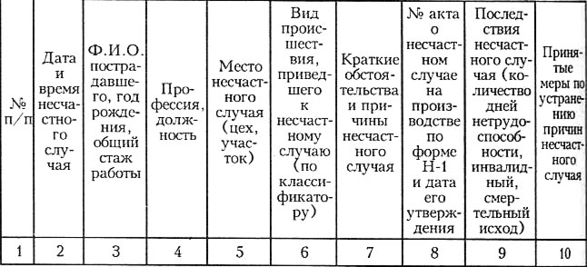 Приложение № 4 ПОРЯДОК Акт по форме Н-1 заполняется текстовой и цифровой информацией, которая должна записываться и кодироваться в соответствии с общепринятыми (установленными) терминами и специально разработанным классификатором. Кодирование проводит организация, где произошел несчастный случай. В п. 1 в первой строке указывается дата и время происшедшего несчастного случая. Число месяца кодируется двумя цифрами, месяц — его порядковым номером в году, год — двумя последними цифрами. Например, 6 мая 1995 г. кодируется: | 0 | 6 | 0 | 5 | 9 | 5 | В третьей строке пункта следует указывать и кодировать, через сколько полных часов от начала работы (смены) с пострадавшим произошел несчастный случай. Например, несчастный случай, происшедший с пострадавшим через 11 часов от начала работы (смены), кодируется: | 11 |. В п. 2 в первой строке указывается наименование организации, где произошел несчастный случай. Наименование организации кодируется по ОКПО, ее адрес — по СОАТО, отрасль — по ОКОНХ. Наименование цеха (участка) организации, где произошел несчастный случай, должно приводиться в соответствие с утвержденным перечнем структурных подразделений организации. Пункт 3 заполняется текстовой информацией и не кодируется. В п. 4 указывается наименование и адрес организации, направившей работника. Организация кодируется по ОКПО. В п. 5 в первой строке полностью записывается фамилия, имя, отчество пострадавшего. Пол кодируется: 1 — мужчина, 2 — женщина. Например, мужчина кодируется: | 1 | В третьей строке указывается и кодируется возраст (числом полных лет, исполнившихся пострадавшему на момент происшедшего с ним несчастного случая). Например, 35 лет кодируются: | 35 | В четвертой строке профессия (должность) кодируется по ОКПДТР. Если у пострадавшего несколько профессий, то указывается та, при работе по которой произошел несчастный случай. В пятой строке указывается и кодируется стаж работы (числом полных лет работы, при выполнении которой произошел несчастный случай). Например, 20 лет кодируются: | 20 | Если стаж работы меньше года, то в текстовой части указывается число проработанных месяцев и дней, а кодируется: | 00 | Например, 9 месяцев 2 дня кодируются: | 00 | Пункт 6 заполняется в соответствии с ГОСТ 12.0.004—90 “ООБТ. Организация обучения безопасности труда. Общие положения”. Не кодируется. В п. 7 при описании обстоятельств несчастного случая следует: дать краткую характеристику условий труда и действий пострадавшего; изложить последовательность событий, предшествующих несчастному случаю; описать, как протекал процесс труда; указать, кто руководил работой (организовывал ее), обеспечен ли был пострадавший средствами индивидуальной защиты и применял их или нет. Во второй строке указывается и кодируется вид происшествия в соответствии с прилагаемым к настоящему Порядку Классификатором “Вид происшествия, приведшего к несчастному случаю”. В третьей строке указываются и кодируются причины несчастного случая (до двух причин несчастного случая в соответствии с прилагаемым к настоящему Порядку Классификатором “Причины несчастного случая”: основная — кодируется первой, сопутствующая — второй). В четвертой строке в текстовой части приводится полное наименование оборудования, использование которого привело к несчастному случаю и которое кодируется по ОКП в соот