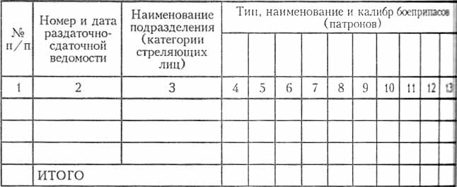9.3. Выдача и прием оружия и боеприпасов (патронов) производятся по книге выдачи и приема оружия при предъявлении соответствующего разрешения на его хранение и ношение. 9.4. Выдача боеприпасов (патронов) на учебные и тренировочные стрельбы, их учет осуществляются по раздаточно-сдаточным ведомостям согласно журналам учета стрельб на стрелковых объектах (приложение № 70 к Инструкции, утвержденной приказом МВД России от 12 апреля 1999 г. № 288). Руководитель стрельбы или раздатчик патронов, назначенные на стрельбы, выдают патроны каждому стреляющему под расписку в указанной ведомости. 9.5. Руководитель стрельбы во время стрельбы осуществляет проверку правильности выдачи патронов, ведения учета выдачи, обеспечивает порядок заряжания и разряжания оружия, осматривает его по окончании стрельбы и организует сбор гильз. 9.6. По окончании стрельб руководитель стрельбы сверяет остатки боеприпасов (патронов) с фактическим расходом по документам выдачи, после чего окончательно оформляет раздаточно-сдаточную ведомость. 9.7. В целях освежения установленного неснижаемого запаса на учебные и тренировочные цели в первую очередь расходуются боеприпасы (патроны), находящиеся вне заводской или не в герметической упаковке, а также более ранних годов изготовления либо интенсивно используемые в служебных целях. | вверх |