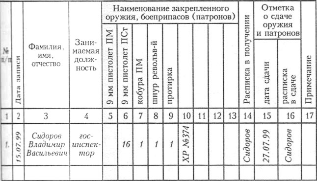 операции с оружием по книге выдачи и приема оружия, ведущейся