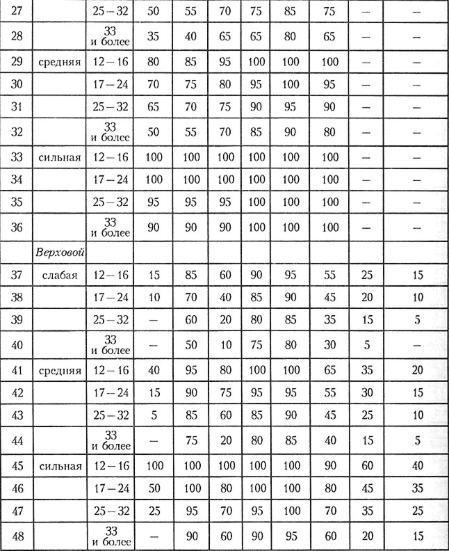 Примечание. Дополнительным признаком интенсивности пожаров может служить также величина невыгоревших участков в процентах от общей площади пожарища. Для пожаров всех видов составляет: при слабой интенсивности — более 15%, при средней — от 6 до 15% и при сильной — менее 6%. | вверх |
