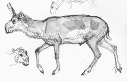 Жить эти быстроногие копытные предпочитают в сухих степях и полупустынях, находя именно здесь все необходимые для себя условия. Твердый субстрат и равнинность степей и полупустынь, низкорослая растительность — все это дает столь нужный им простор. На равнинах издали заметны враги — в первую очередь человек — со всеми достижениями цивилизации (машина, мотоцикл, ружье), а также хищники, в частности волк, роль которого, на мой взгляд, сильно преувеличена. Только суровые зимние бураны или изнурительная летняя засуха заставляют сайгаков покидать полупустынные равнины и укрываться в бугристых песках с кустарником, заходить в поймы рек на водопои. Необычен их образ жизни, характерная черта которого — кочевье. Кроме короткого периода, связанного с рождением молодняка, у них нет строгой привязанности к определенному участку территории. Ни один вид наших копытных, даже северный олень, не образует таких колоссальных стад, порой насчитывающих нескольких сот тысяч голов. И это несметное количество животных ухитряется прокормиться скудным пайком сухих степей и полупустынь, перемещаясь по бескрайним просторам Калмыкии, Казахстана и Средней Азии. По 300—500 километров проходят ежедневно сайгачьи стада, летом нередко при сорокаградусной жаре, зимой — в 30—40-градусные морозы. Сайгак чувствует себя хорошо и уверен в своей безопасности только когда он в стаде. Тысячи настороженных глаз, чутких носов и ушей скорее замечают опасность. Как и всякое степное животное, он пуглив и осторожен. Когда стадо отдыхает, то несколько наиболее сильных и выносливых зверей стоят на страже, охраняя покой остальных. Сталкиваясь с неожиданной опасностью, вместо того, чтобы броситься наутек, сайгак делает скачок-свечку — вперед и вверх. Конечно, он теряет драгоценный миг для бегства, но зато окружающие вовремя замечают врага. Потревоженные животные в свою очередь оповещают других сигнальными прыжками. Волна беспокойства прокатывается по огромному стаду, и вот оно с ревом и топотом сбивается воедино, чтобы через мгновение пуститься вскачь. В начале декабря наступает брачный сезон. Самцы становятся крайне неуживчивыми, и многочисленные стада животных распадаются на мелкие табунки. Каждый взрослый самец старается завладеть большим количеством самок, пытаясь создать свой “гарем”, иной раз содержащий до тридцати избранниц. Почти весь месяц предводитель табунка не знает ни минуты покоя. Он бдительно пасет своих подопечных, не давая им разбредаться или сходиться с другими табунками. Возбужденные самцы вступают в ожесточенные драки, ударяя друг друга рогами. Рождение молодняка происходит к концу апреля—началу мая. В этот период самки собираются в определенных местах — “родильных домах”, где образуют очень плотные скопления. Первые три дня сайгачата таятся там, где они появились на свет. Лежат неподвижно, крепко прижимаясь к земле. Они не шевельнутся, даже если к ним подойдешь вплотную. А если возьмешь на руки, замирают на некоторое время, а потом начинают биться в руках и призывать на помощь мать. Пройдет неделя-другая, сайгачата окрепнут, и стадо вновь двинется на поиски корма. Рацион сайгаков достаточно разнообразен. Основу питания составляют злаки, пустынные кустарнички и полукустарнички, разнотравье; эфемеры. Ежедневно сайгак съедает от 3 до 6 кг корма