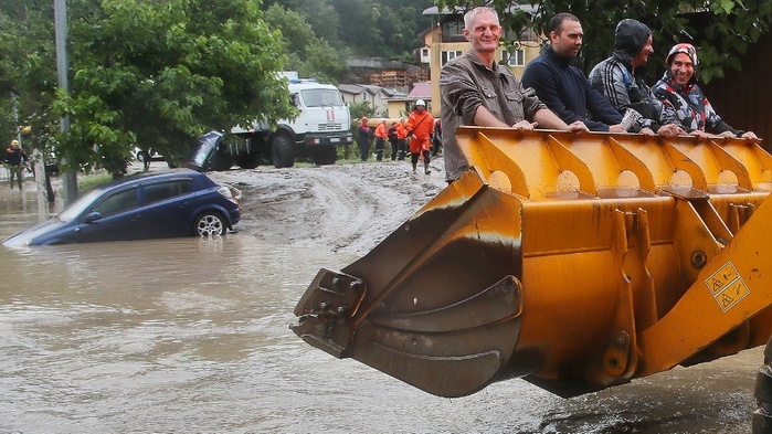 Сочи (Краснодарский край)– ожидаемая драма во влажных субтропиках. Весь май и самое начало июня – «плановое» время для шквальных дождей. Только на этот раз они оказались апокалипсическими – «залповыми» на языке науки. За несколько часов выпала месячная норма осадков. Основной потоп пришелся на 4-6июля., вторая волна «догнала» Сочи 23 июля. 500 гектаров курортной территории оказалось под водой. Разрушено 300 частных дворов. 136 человек эвакуировано из наиболее опасных мест. 7 человек погибло. Ущерб не менее 18 млн. рублей. Он мог быть существенно ниже, если бы не нарушения технологии строительства Олимпийских объектов, повлиявшие на работу сочинской системы дождевого дренажа. Из берегов вышли лишь 2 реки – Мацеста и Дагомыс. Не имея сливных отводов, вода пошла крушить курортный город…