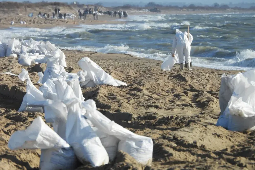 Действительно, когда власти рапортуют об уборке пляжей, речь идет о снятии верхнего слоя мазута и создании видимости привычного ландшафта. На самом деле мелкие частицы нефтепродукта остаются, лопатой их не выбрать. Со временем, ближе к лету, когда станет теплее, вещество начнет разлагаться. Но этот процесс может растянутся на годы: частички мазута быстро заносит песком, но в какой-то момент они окажутся на поверхности.